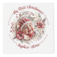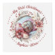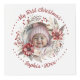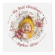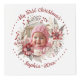 This delightful photo cube is an ideal way to commemorate your baby's first Christmas. Decorated with a beautiful floral wreath, it showcases vibrant flowers, berries, and lush green leaves in shades of red and beige. Each face of the cube features the same wreath, but highlights a different picture of your little one. Above each photo, the graceful phrase "My First Christmas" is elegantly displayed, flanked by cheerful dots. At the bottom, your baby's name and the year are presented in a bold festive red. This photo cube not only captures the enchantment of your baby's first Christmas but also becomes a treasured keepsake for years to cherish.