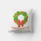 Celebrate the season with this charming Christmas throw pillow featuring a classic green wreath with red ornaments and a bow, accompanied by a cheerful "Merry Christmas" message. A perfect addition to your holiday home decor or as a thoughtful Christmas gift!