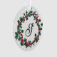 Christmas tree ornament. Design Christmas wreath and personalised initial on one side, and wreath and candle detail. Both hand drawn by me, Mònica Roca.