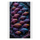 A visionary ceramic-inspired artwork depicting a fantastical school of alien fish, the “Chroma-Fin Drifters.” Each fish is rendered with intricate sculptural detail, their crystaline, iridescent glazes glowing in vibrant hues of pink, orange, teal, and violet. Their glossy, jewel-like eyes and meticulously patterned scales suggest bioluminescence and otherworldly origins. The school drifts across a dark, textured backdrop resembling a cosmic abyss or nebula, enhanced with shimmering metallic and crystaline accents. This high-concept design evokes alien biodiversity, deep-space wonder, and the beauty of sci-fi-inspired fantasy worlds.