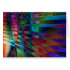 Abstract digital art resembling stripes of coloured chrome radiating across a colourful spectrum, like light rays made of glass.