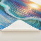 Invite the calm of the sea into your home with this surreal seascape piece, where a beautiful blend of blue hues and opal and jade colored waves meet the warmth of a dreamy sunset.