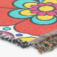 A beautiful small blanket that is perfect for covering your legs while curled up in front of the fire, or for a decorative touch on the sofa. We also think it looks brilliant as a Christmas table centerpiece. We are delighted with it. The colors are absolutely perfect. Vibrant yet traditional. The pattern retains its lovely details despite the texture of the fabric. Very classy product that will not disappoint as a gift.