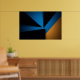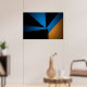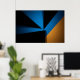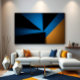 Triangular shapes in blue, black, and orange meet in a bold composition. Light and shadow create depth in this minimalist geometric art. Ideal for those seeking modernity and contrast in contemporary decor. A piece that balances energy and sobriety with mastery.