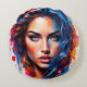 Chromatic Muse – Neon Splash Portrait Round Cushion