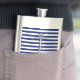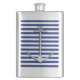 Chrome Anchor Nautical on Navy Stripes Print Hip Flask
