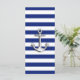 A silver chrome like anchor applique on a horizontal navy blue style stripes print decor for a perfect nautical look.