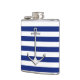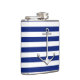 A modern nautical silver like applique style on a navy blue stripes pattern decor for a fine custom gift.