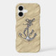 A modern nautical silver chrome like applique style on a sandy beach decor for a custom phone case everyone on, or off the boat will enjoy.