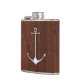 Chrome Anchor on Wet Mahogany Print Hip Flask
