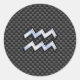 Chrome Aquarius Zodiac Sign Carbon Fibre Styles Classic Round Sticker