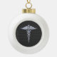 Chrome Caduceus Medical Symbol Black Carbon Fibre Ceramic Ball Christmas Ornament