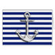 A nautical silver chrome like anchor design graphic decor on blue stripes. A modern nautical gift sure to make an impression on, or off the boat.