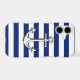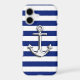 A nautical silver chrome like anchor design graphic decor on blue stripes. A modern nautical gift sure to make an impression on, or off the boat.