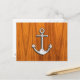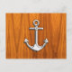 A silver chrome like anchor design on a teak wood veneer grain style background decor. A modern nautical gift.