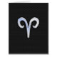 A silver chrome like Aries zodiac sign on a black snake skin style background. A great urban automotive classy looking birthday gift idea.