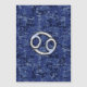 A silver chrome like Cancer zodiac symbol on a navy blue digital camouflage style print background. A modern urban racy design for a great custom birthday gift idea.