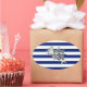 A silver chrome like mermaid figure design on a navy blue stripes decor. A modern nautical gift.