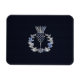 A silver chrome like Scottish thistle applique design on a navy blue carbon fibre style print.