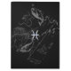 A silver chrome like Pisces zodiac symbol on a vintage Hevelius astrology constellation map circa 1690 print background. A mix of modern urban racy and vintage designs for a great custom birthday gift idea.