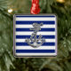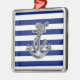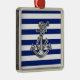 Chrome Like Rope Anchor on Nautical Stripes Metal Tree Decoration
