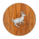A silver chrome like running white tail deer on a teak wood grain style decor for a fine custom gift idea.