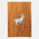 Chrome Like Running Deer on Fine Teak Print Tea Towel