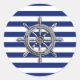 Chrome Like Wheel on Nautical Stripes Classic Round Sticker