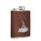 Chrome Marlin Fishing Boat on Wet Mahogany Print Hip Flask