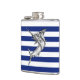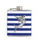 A modern nautical silver like applique style on a navy blue stripes pattern decor for a fine custom gift.