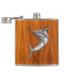 A modern nautical style silver chrome like applique on a teak wood print decor for a fine custom flask gift.
