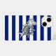 A modern nautical applique design on blue stripes background for a fine phone case.