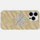 A modern nautical silver chrome like applique style on a sandy beach decor for a custom phone case everyone on, or off the boat will enjoy.