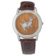 A silver chrome like running white tail deer on a teak wood style decor for a fine custom gift idea.