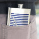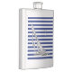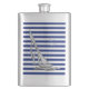 Chrome Sail Boat on Navy Stripes Print Hip Flask