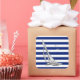 A silver chrome like regatta sail boat design on a navy blue stripes decor. A modern nautical gift.