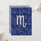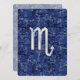 A silver chrome like Scorpio zodiac symbol on a vibrant navy blue digital camouflage design print decor. A modern urban racy design for a great custom birthday gift idea.