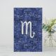 A silver chrome like Scorpio zodiac symbol on a vibrant navy blue digital camouflage design print decor. A modern urban racy design for a great custom birthday gift idea.