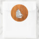 Chrome Silver like Sailboat on Teak Veneer Classic Round Sticker