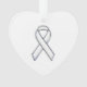 Chrome Silver Print Belted White Ribbon Awareness Ornament