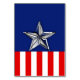 A silver chrome like star design presented here on a patriotic style graphic print. Good for a patriotic occasion, sports event, or for a gift with an American look to it.