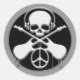 CHROME SKULL, GUITAR AND PEACE SIGN CLASSIC ROUND STICKER