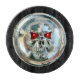Cool,vibrant and expressive design with black and silver metallic reflections .Photograpy and digital elaboration of an awesome round chrome skull .