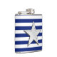 A modern nautical silver like applique style on a navy blue stripes pattern decor for a fine custom gift.
