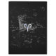 A silver chrome like Aries zodiac symbol on a vintage Hevelius astrology constellation map black background. A mix of modern urban racy and vintage designs for a great custom birthday gift idea.