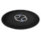 A silver chrome like Cancer zodiac symbol applique on a black snake skin style print background. A modern urban racy design for a great custom birthday gift idea.