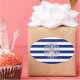 A silver chrome like fishing boat design on a navy blue stripes decor. A modern nautical gift.