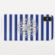A silver chrome like fishing boat design on a navy blue stripes decor. A modern nautical gift.