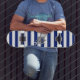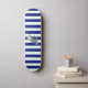 A silver chrome like mermaid figure design on a navy blue stripes decor. A modern nautical gift.