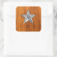 Chrome Style Nautical Star on Teak Veneer Square Sticker